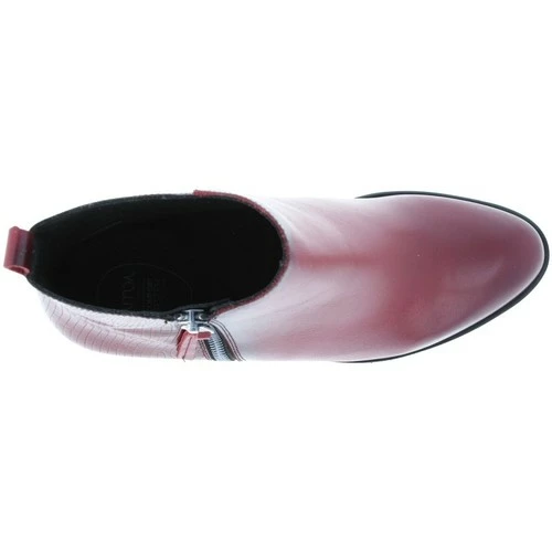 Bottines à talon, en cuir lisse sur l’avant et cuir serpent sur l’arrière.