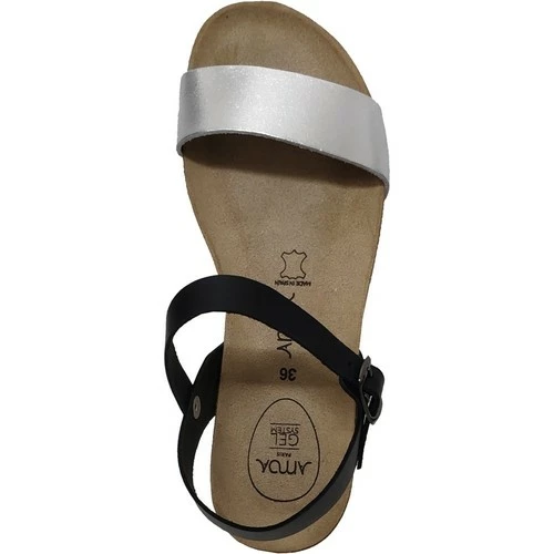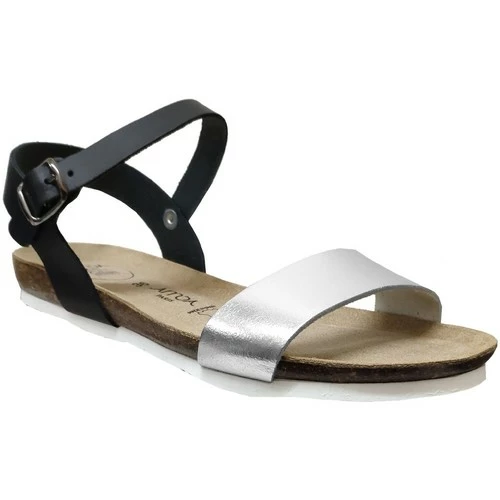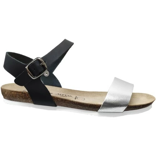 Noir/argent nu-pied. Chaussures femme métallisé noir, bride arrière, basse, plat, hauteur de talon 1 cm, boucle.