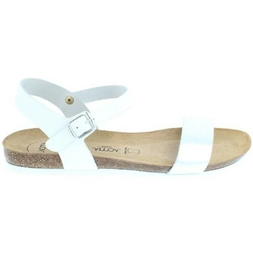 Sandale plate en cuir, bride blanche avec fermeture à boucle argent et lanière argentée à l’avant.