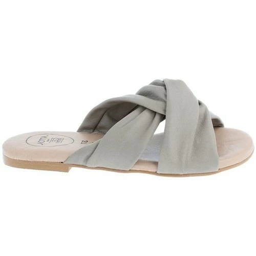 Sandale plate en cuir, brides marron. Semelle intérieure cuir avec AMOA gel system amortissant sous tout le pied. Semelle extérieure striée en EVA. Modèle extrêmement confortable.