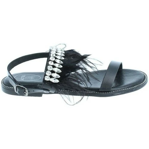 Sandale plate en cuir, brides noires, bijoux argent. Semelle intérieure cuir noire avec AMOA gel system amortissant sous tout le pied. Semelle extérieure noire striée en EVA. Modèle extrêmement confortable.