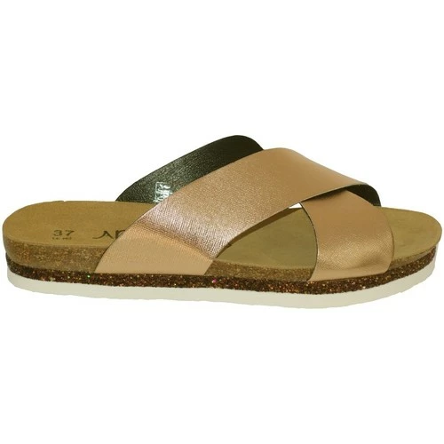17307 Dora 2 Rose Gold mule. Chaussures femme métallisé Or, mules, basse, plat, hauteur de talon 3 cm, a enfiler.