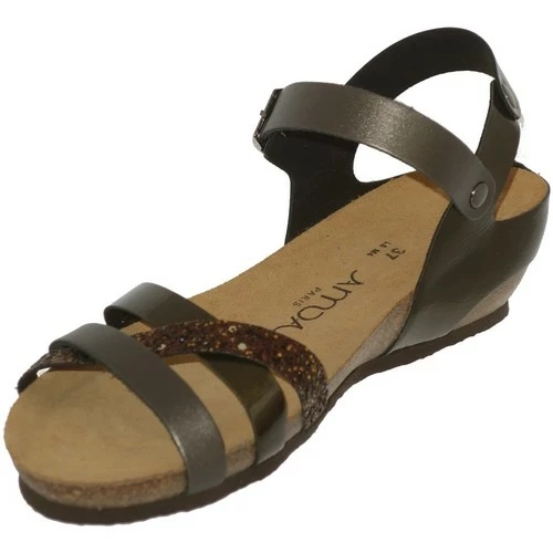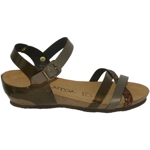 17301 Hami mirror2 Copper nu-pied. Chaussures femme fantaisie Marron, bride arrière, basse, talon compensé, hauteur de talon 4 cm, boucle.